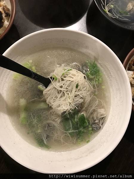 牡蠣麵線,湯頭很鮮甜,麵線不軟爛(很怕軟爛口感的麵線)