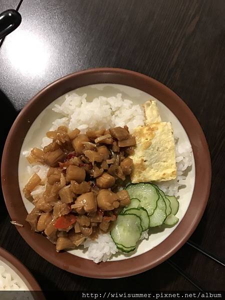 再搭配一小片蛋和些許小黃瓜,完成干貝飯